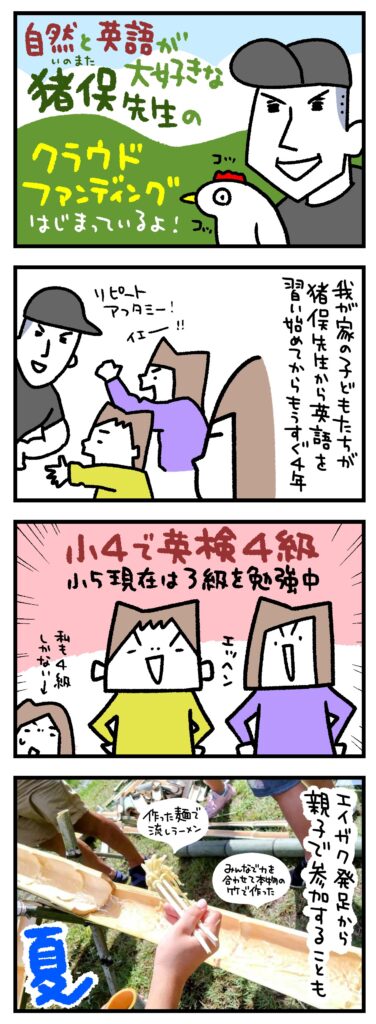 自然と英語が大好きな猪俣先生の「エイガク」がクラウドファンディングに始めました!