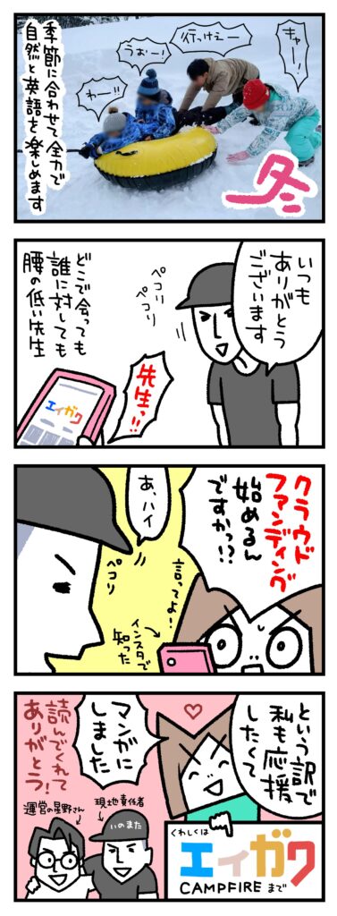 エイガク 山古志英語学童のクラウドファンディング(CAMPFIRE)はこちら↓